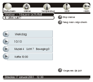 Met deze interface kan je je wekker instellen. Je kunt het snel doen